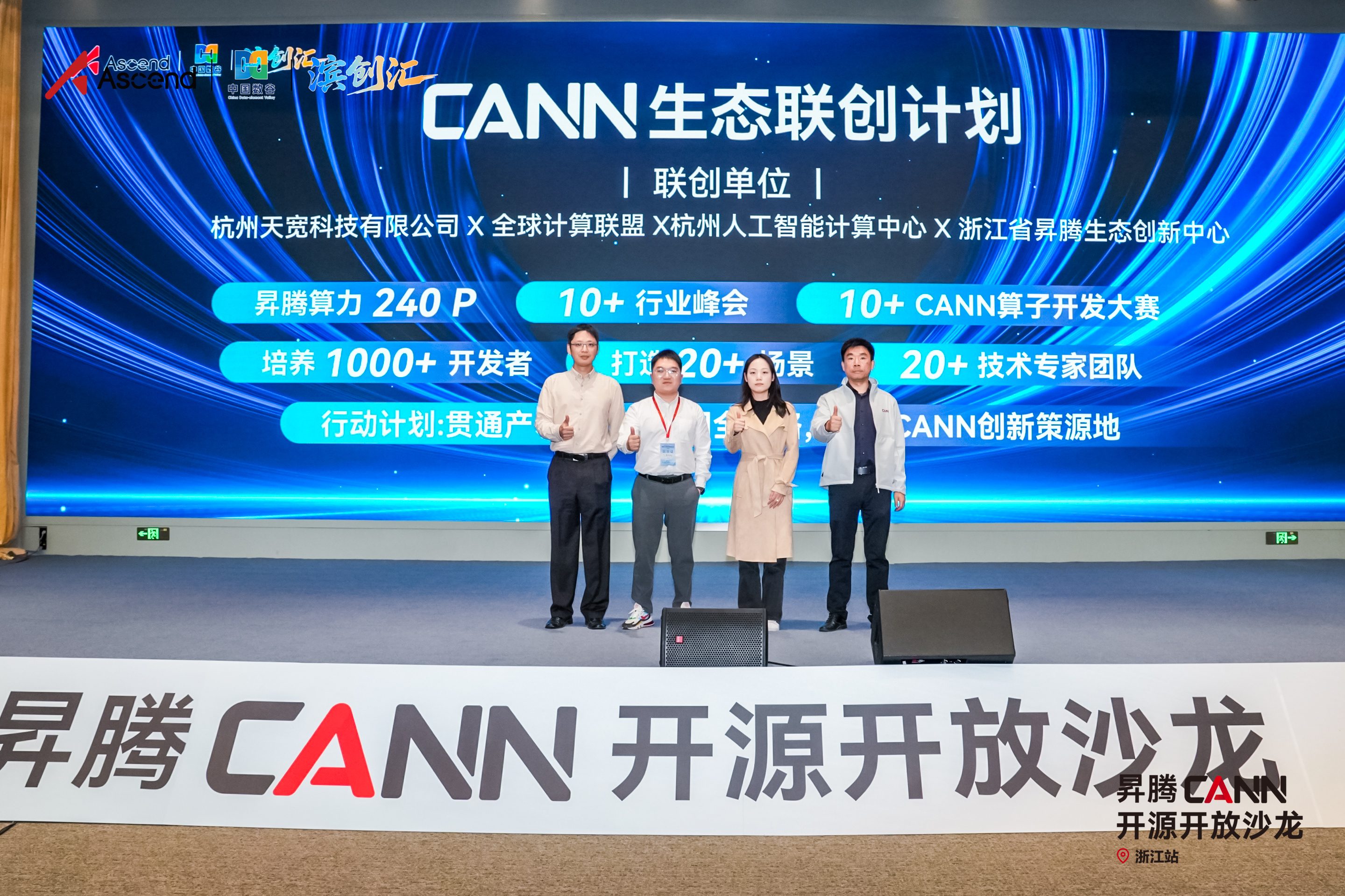 2025年11月14日,AI產(chǎn)業(yè)生態(tài)發(fā)展歷程中迎來重要里程碑——杭州天寬科技有限公司(下文稱“天寬科技”)在“昇騰CANN開源開放沙龍·浙江站”上,依托區(qū)品牌活動“濱創(chuàng)匯”的集聚效應(yīng),攜手全球計算聯(lián)盟、浙江省昇騰生態(tài)創(chuàng)新中心、杭州人工智能計算中心等重量級伙伴,共同發(fā)布“CANN生態(tài)聯(lián)創(chuàng)計劃”。這一開創(chuàng)性舉措標(biāo)志著CANN開源生態(tài)首次以體系化、平臺化的模式落地浙江,憑借其在昇騰AI生態(tài)中的技術(shù)和整合能力,深度主導(dǎo)多個關(guān)鍵環(huán)節(jié),成功將本次技術(shù)沙龍升維為引領(lǐng)區(qū)域AI產(chǎn)業(yè)發(fā)展的戰(zhàn)略發(fā)布平臺。